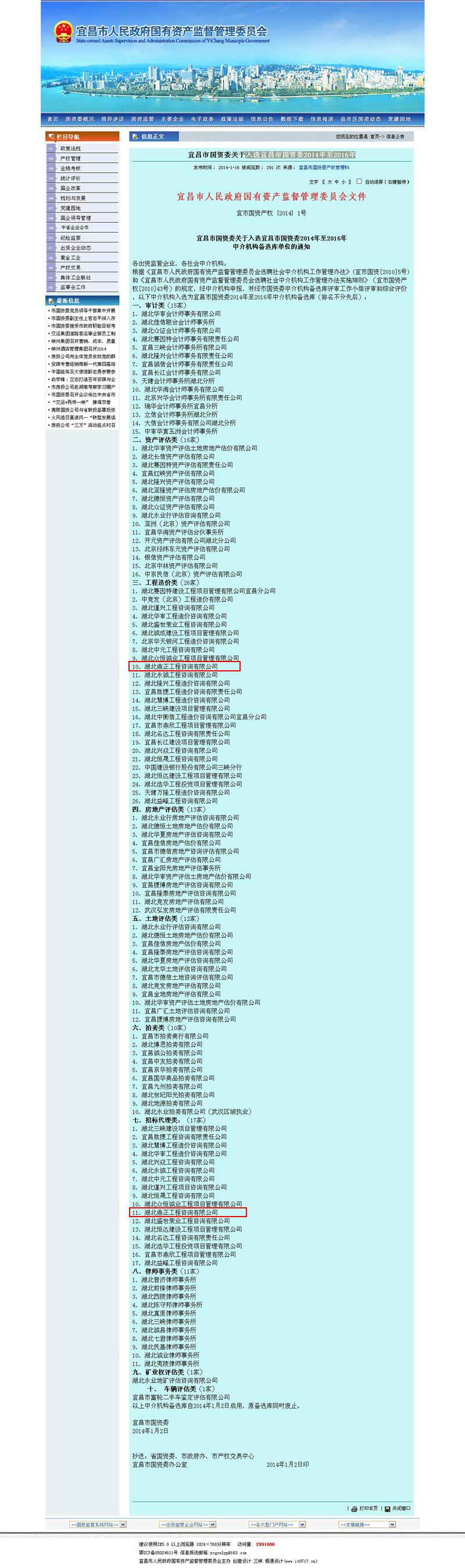 我公司入選宜昌市國資委2014年至2016年中介機構(gòu)備選庫