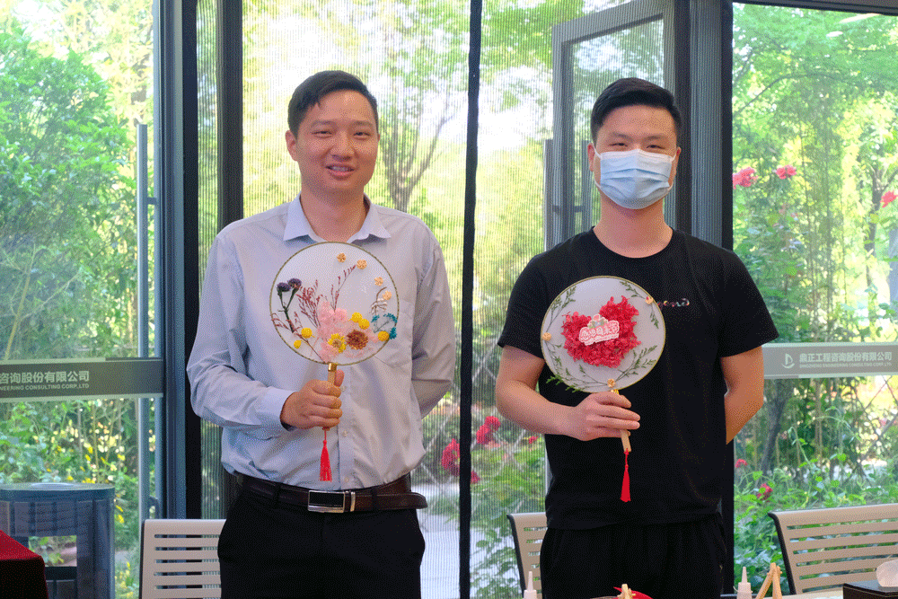選樣、描線、粘花···一番精心的制作,大家都完成了屬于自己的團(tuán)扇。