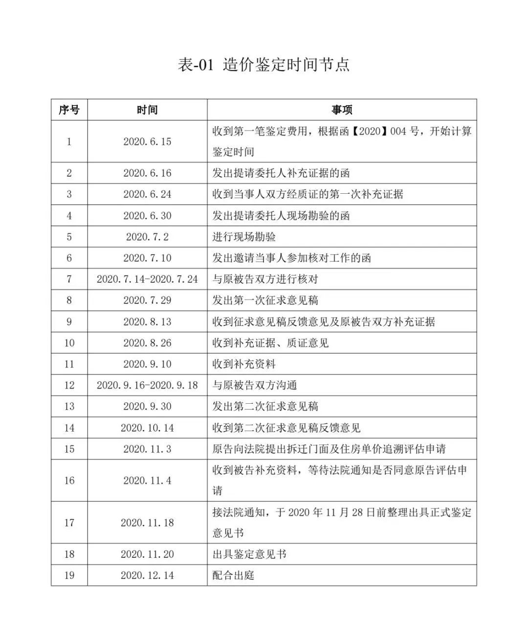 案例項(xiàng)目的造價(jià)鑒定中,時(shí)間節(jié)點(diǎn)詳表-01。