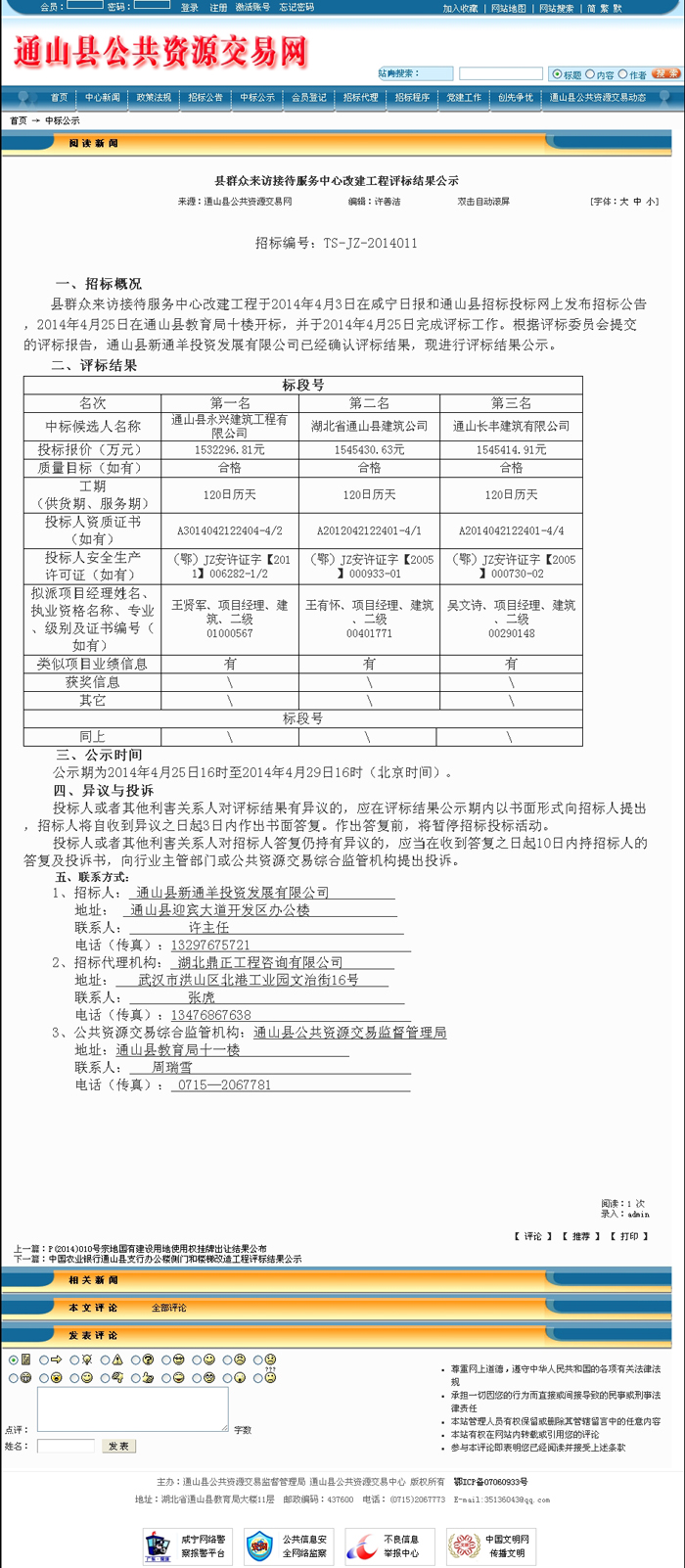 縣群眾來訪接待服務(wù)中心改建工程評(píng)標(biāo)結(jié)果公示