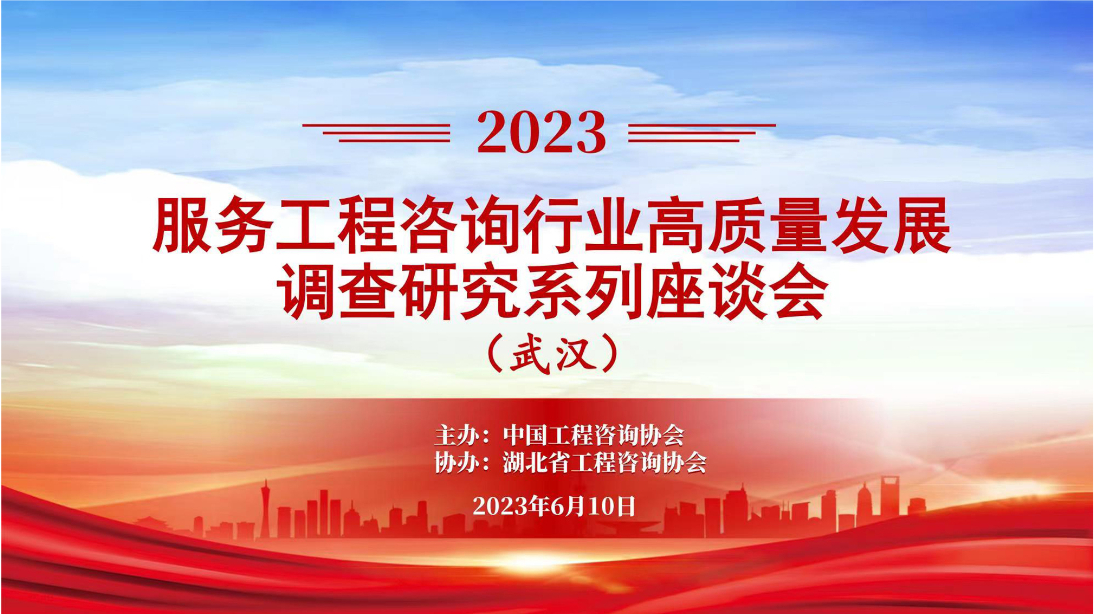 6月10日,我司王雁然董事長出席由中國工程咨詢協(xié)會(以下簡稱中咨協(xié)會)主辦,湖北省工程咨詢協(xié)會協(xié)辦“2023年服務工程咨詢行業(yè)高質(zhì)量發(fā)展調(diào)查研究座談會”并做交流發(fā)言。會議由中咨協(xié)會會長肖鳳桐主持,來自湖北、湖南、河南三省13家工程咨詢企業(yè)代表近30人參加了此次座談會。