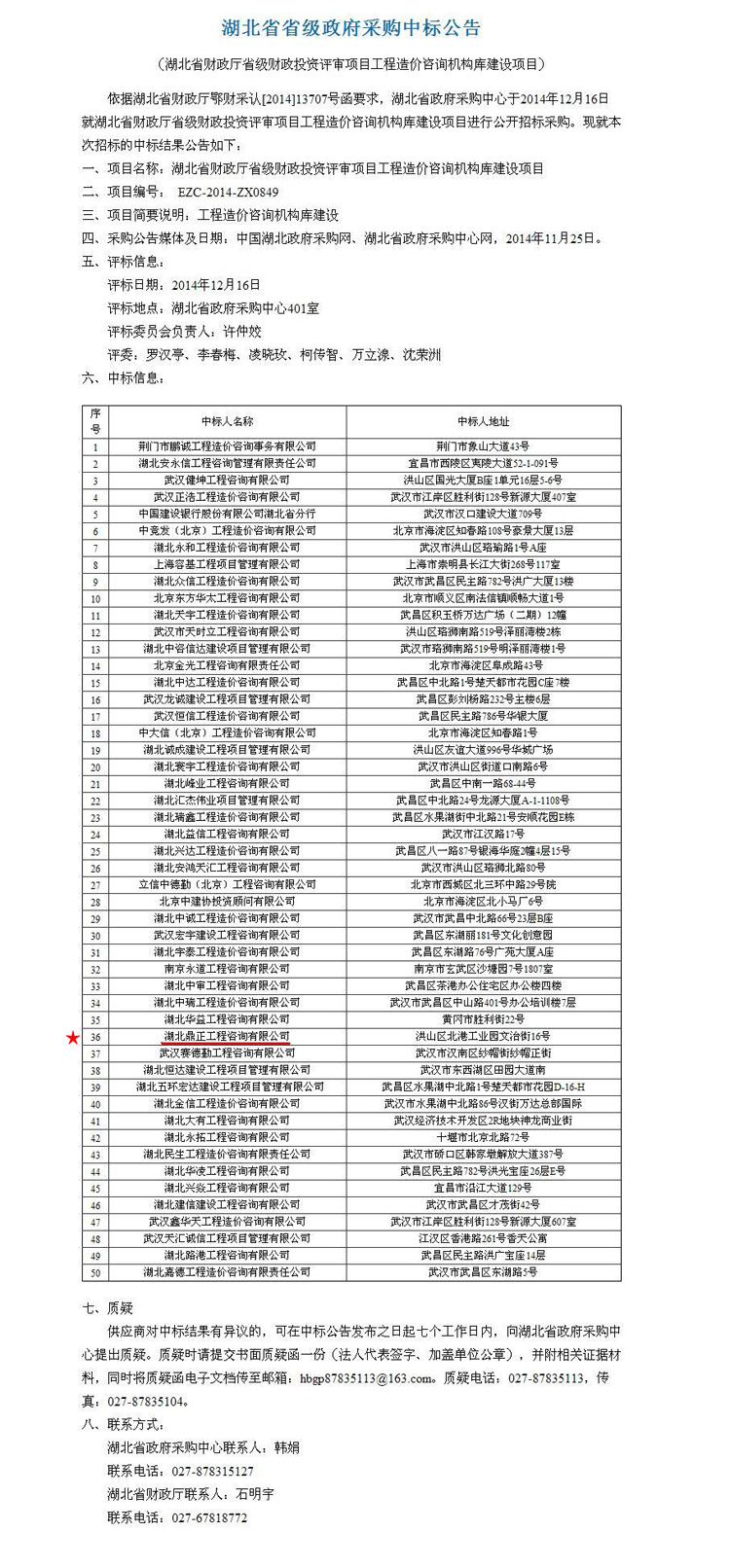 【經(jīng)營成果】我司入選湖北省財政廳省級財政投資評審項目工程造價咨詢機構庫