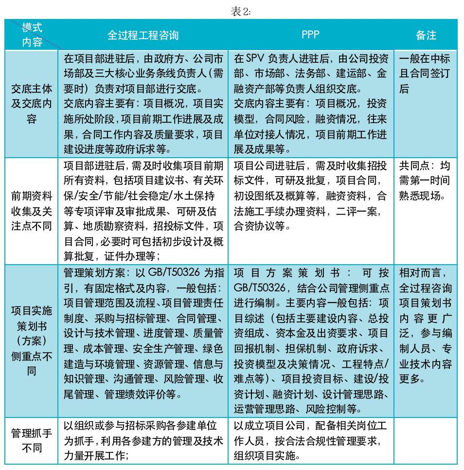 3)從上可以看出,全過程咨詢管理在管理工作開展的同時,會比PPP項目更關注技術、專業(yè)層面的工作及質(zhì)量。PPP項目關注度高度集中在投資收益的獲取上,有時甚至會人為的暫停施工。