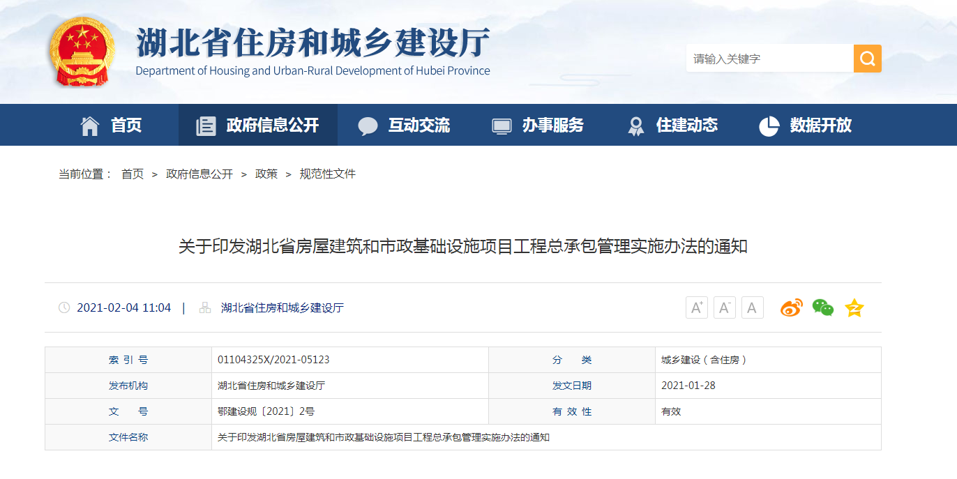 關于印發(fā)湖北省房屋建筑和市政基礎設施項目工程總承包管理實施辦法的通知