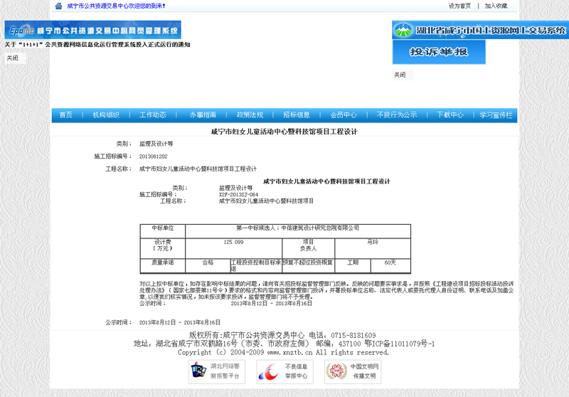 咸寧市婦女兒童活動中心暨科技館項(xiàng)目工程設(shè)計中標(biāo)通知