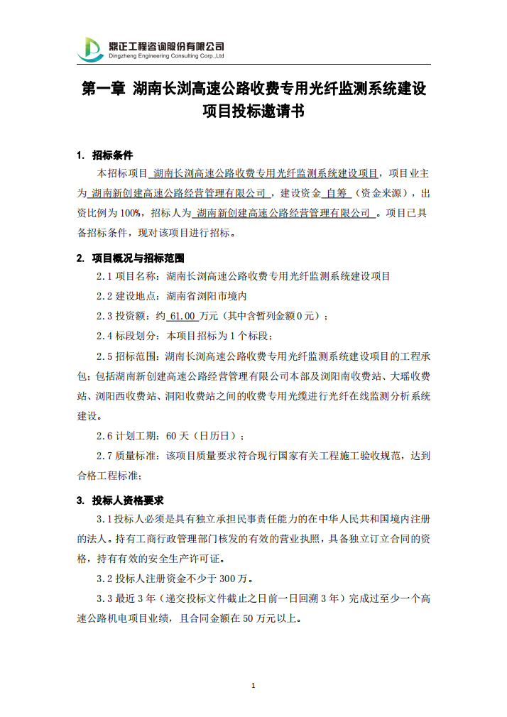 湖南長(zhǎng)瀏高速公路收費(fèi)專用光纖監(jiān)測(cè)系統(tǒng)建設(shè)項(xiàng)目投標(biāo)邀請(qǐng)書