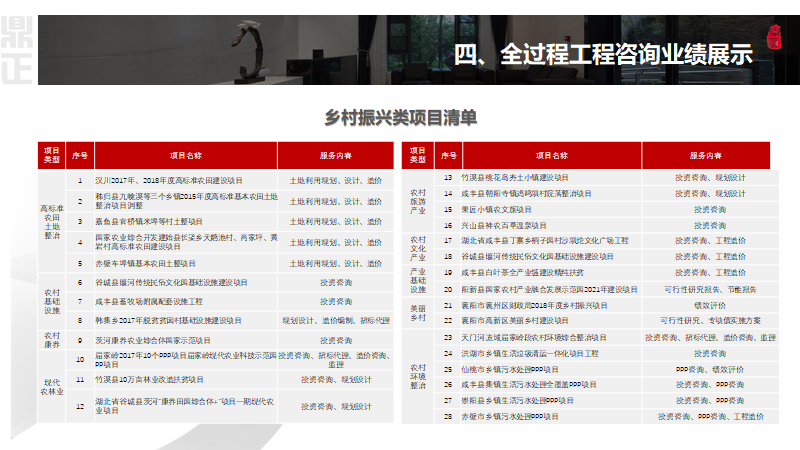 鼎正始終踐行“以全過程工程咨詢及PPP全生命周期咨詢服務(wù)為先導(dǎo)、以投資管控為主線、以項目增值為目標(biāo)”的一站式工程咨詢服務(wù)理念,積極探索參與鄉(xiāng)村振興的領(lǐng)域與路徑,緊跟鄉(xiāng)村振興新動向,充分發(fā)揮工程咨詢企業(yè)高智力支撐作用,干出工程咨詢新作為!