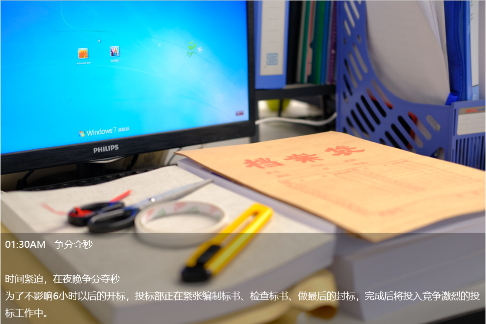凌晨1點,投標(biāo)部毓兒還在趕標(biāo)書,這是她這個月第五份標(biāo)書,已經(jīng)連續(xù)熬了四個晚上。她說:“對于投標(biāo)人說,有一大半的標(biāo)書,都是在半夜里完成的。尤其是臨近開標(biāo)的前兩天,基本都會加班到很晚?!?/span>