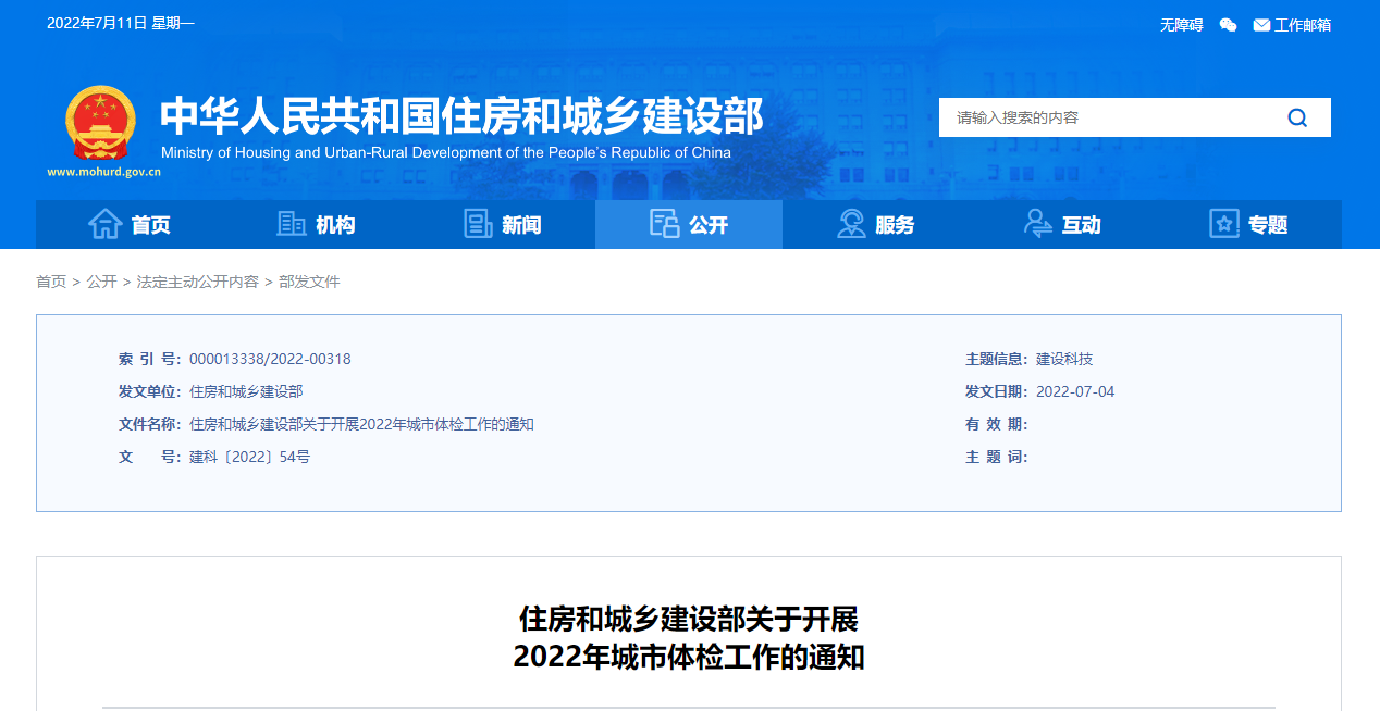 住房和城鄉(xiāng)建設部關于開展2022年城市體檢工作的通知