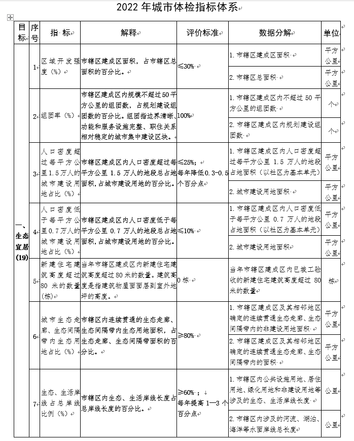 為深入貫徹習近平總書記關于建立城市體檢評估機制的重要指示精神,落實中共中央辦公廳、國務院辦公廳印發(fā)的《關于推動城鄉(xiāng)建設綠色發(fā)展的意見》部署要求,經協商研究,在歷年城市體檢工作基礎上,決定繼續(xù)選取直轄市、計劃單列市、省會城市和部分設區(qū)城市(見附件1,以下簡稱樣本城市)開展2022年城市體檢工作?,F將有關事項通知如下: