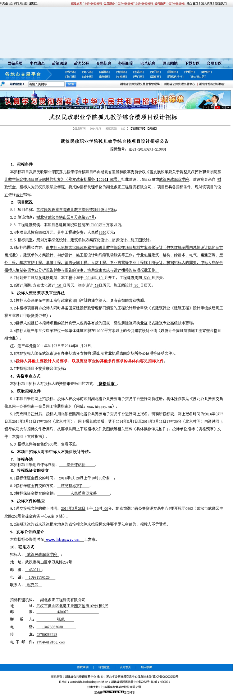 武漢民政職業(yè)學(xué)院孤兒教學(xué)綜合樓項(xiàng)目設(shè)計(jì)招標(biāo)