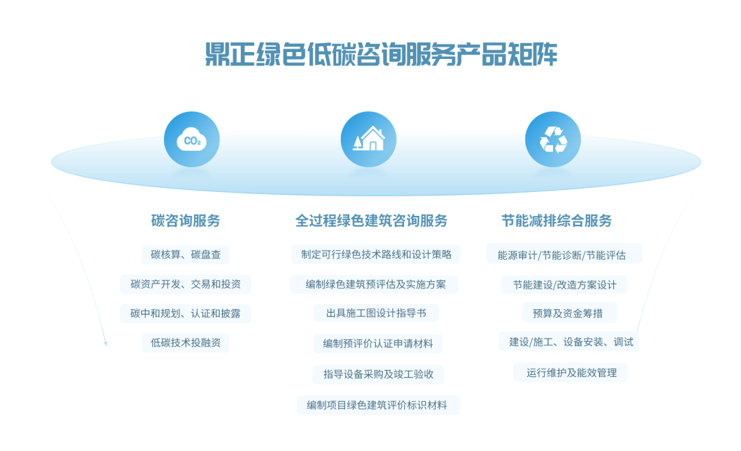 鼎故革新,正己守道。作為一家以創(chuàng)新驅(qū)動(dòng)變革的工程咨詢企業(yè),我們密切關(guān)注國(guó)家前沿動(dòng)態(tài),緊跟國(guó)家政策,不斷優(yōu)化產(chǎn)品結(jié)構(gòu)和服務(wù)模式。在“雙碳”目標(biāo)下,自2020起即針對(duì)工程領(lǐng)域的降碳、減排展開(kāi)探索,協(xié)助政府統(tǒng)籌區(qū)域能源消耗,為碳指標(biāo)交易及資產(chǎn)管理、綠色金融、政策法規(guī)等方面的規(guī)劃作出指導(dǎo),這為孵化綠色低碳咨詢產(chǎn)品矩陣打下堅(jiān)實(shí)的基礎(chǔ)。