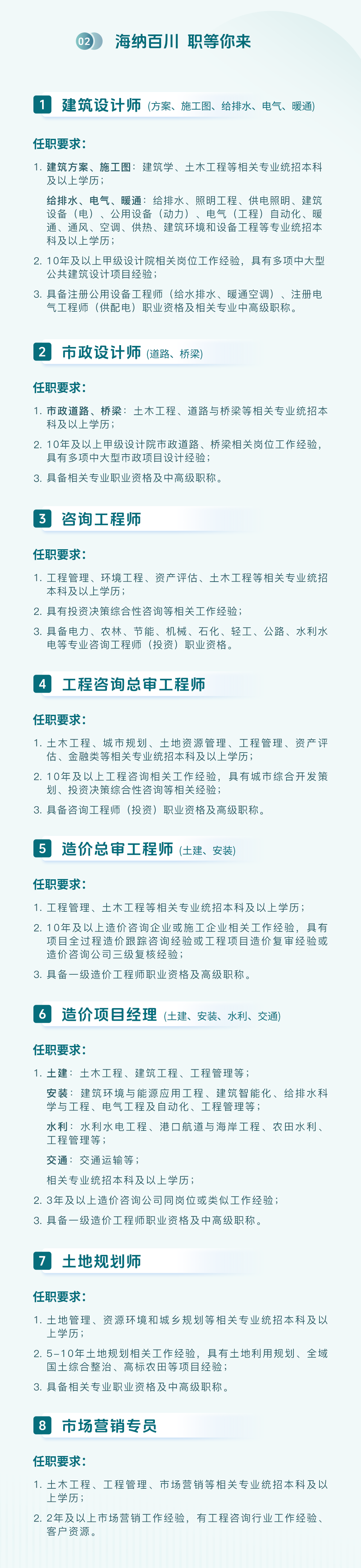 業(yè)績涉及各類公建、工業(yè)、能源、環(huán)保、交通、市政、城市軌道、國土整治等行業(yè),包括海內(nèi)外各類建設(shè)項(xiàng)目的工程咨詢、工程招標(biāo)代理、工程造價咨詢、項(xiàng)目管理等咨詢業(yè)務(wù)...