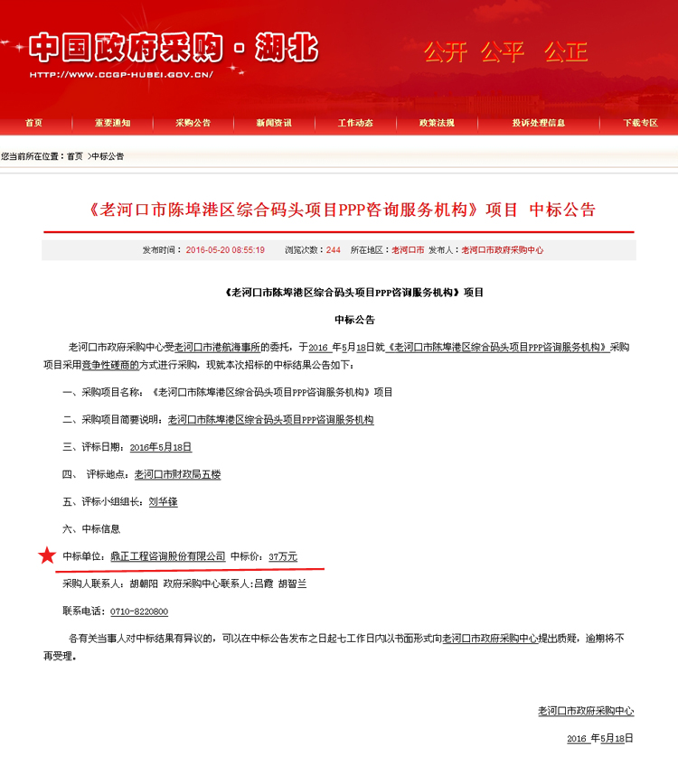 【經(jīng)營(yíng)成果】我司中標(biāo)《老河口市陳埠港區(qū)綜合碼頭項(xiàng)目PPP咨詢服務(wù)機(jī)構(gòu)》項(xiàng)目