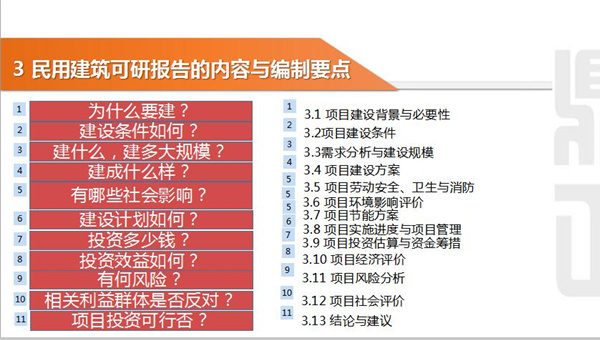 上午,來自工程咨詢一部的余國秋做了《民用建筑可行性研究報(bào)告編制要點(diǎn)與實(shí)務(wù)》的主題分享。余國秋從可行性研究基本認(rèn)識(shí)、民用建筑可行性研究報(bào)告編制要點(diǎn)、可行性研究實(shí)務(wù)三個(gè)方面展開,重點(diǎn)闡述了做可行性研究報(bào)告的必要性,怎么做可行性研究報(bào)告。
