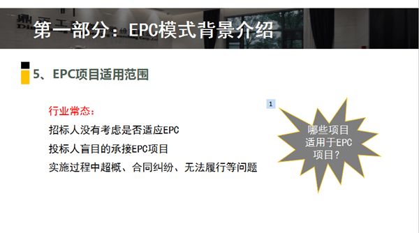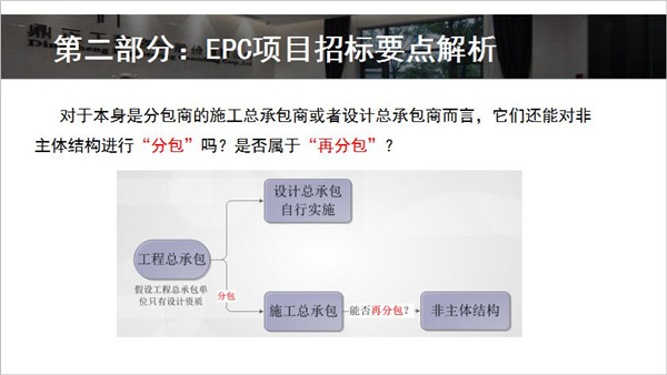 下午,采購與招標(biāo)代理事業(yè)部的潘勝強(qiáng)帶來了《EPC項(xiàng)目招標(biāo)實(shí)務(wù)》的主題培訓(xùn)。潘勝強(qiáng)首先介紹了EPC模式的背景,包含工程總承包的主要模式,EPC發(fā)展?fàn)顩r,EPC項(xiàng)目適用范圍,招標(biāo)流程等多方面內(nèi)容。隨后對(duì)EPC項(xiàng)目招標(biāo)要點(diǎn)進(jìn)行了解析,結(jié)合相關(guān)政策文件對(duì)工程總承包發(fā)包階段和條件、資格條件的設(shè)置、EPC項(xiàng)目前期單位是否可以參與后期投標(biāo)、合同計(jì)價(jià)方式、分包原則進(jìn)行了詳細(xì)的解讀。