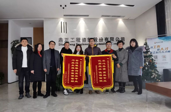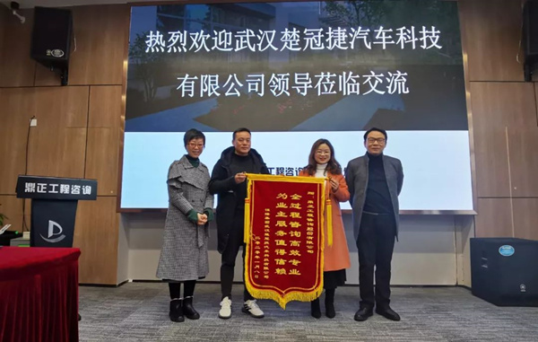 2020年1月14日,武漢楚冠捷汽車科技有限公司龔經(jīng)理、朱主任蒞臨鼎正咨詢公司,特向?yàn)槠涠趶S房建設(shè)項(xiàng)目提供全過程工程咨詢服務(wù)的鼎正咨詢團(tuán)隊(duì)及項(xiàng)目負(fù)責(zé)人程正一贈(zèng)送錦旗并表達(dá)感謝。