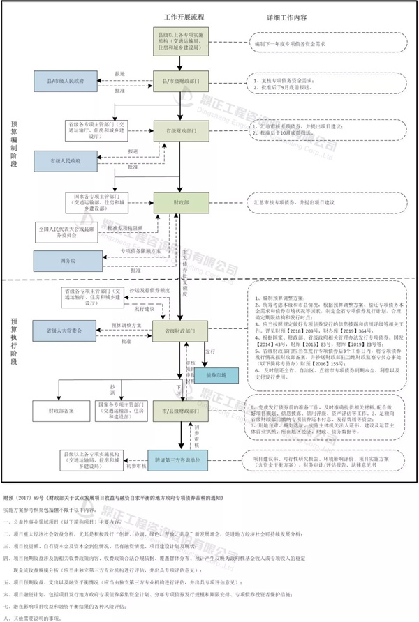 本次以縣市級政府發(fā)行債券的審批流程(如下圖)為例,分為預算編制階段和預算執(zhí)行階段兩個階段。